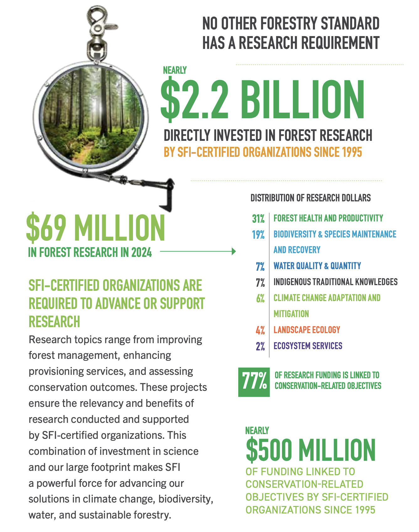 SFI is the only forest standard that requires certified organizations to invest in research.