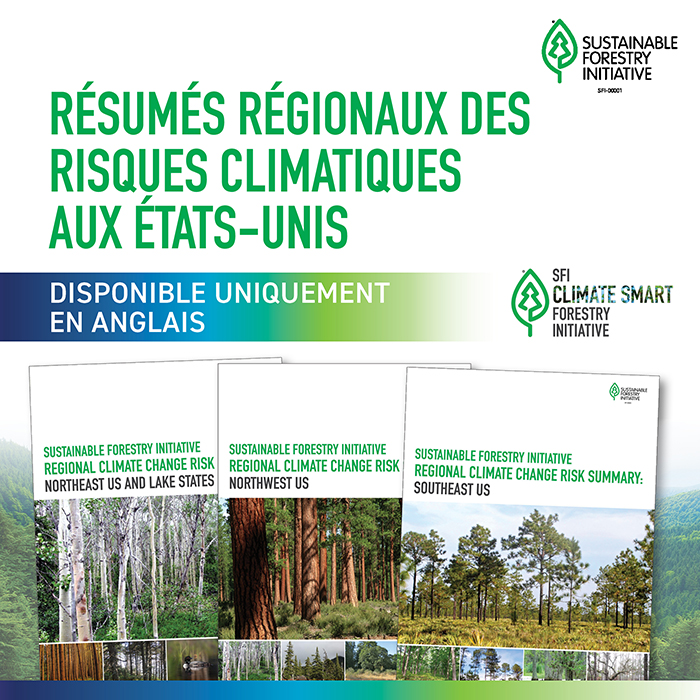 La SFI fournit désormais aux organisations certifiées un cadre d’action pour les aider à évaluer et à éclairer leurs décisions de gestion visant à réduire leur vulnérabilité aux incidences climatiques, en leur proposant une approche structurée pour identifier et hiérarchiser les risques climatiques. La première série de résumés régionaux des risques liés au changement climatique de la SFI est maintenant disponible pour les organisations certifiées SFI et la communauté forestière et de conservation au sens large en tant que ressource pour soutenir la prise de décisions éclairées dans un environnement en constante évolution.