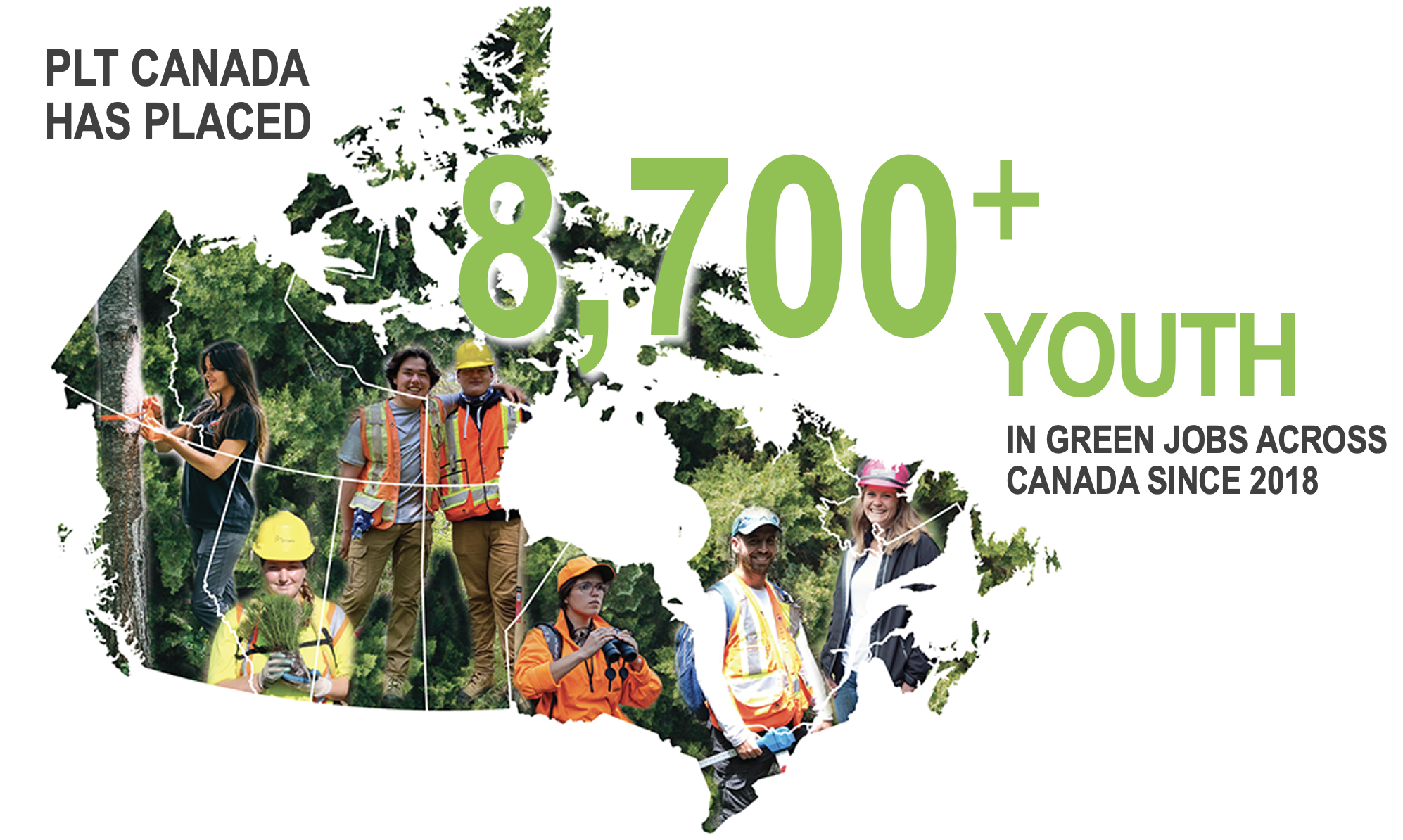 PLT Canada has achieved gender balance across job placements. We have also prioritized Indigenous youth placements and built relationships with Indigenous youth development organizations in the forest sector to provide opportunities and career support. In 2025, 55% of green jobs were filled by young women and 24% of green jobs were filled by Indigenous youth.