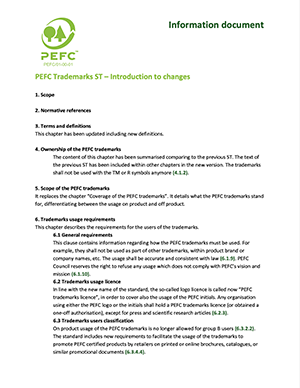 PEFC CHAIN OF CUSTODY AND TRADEMARK USE