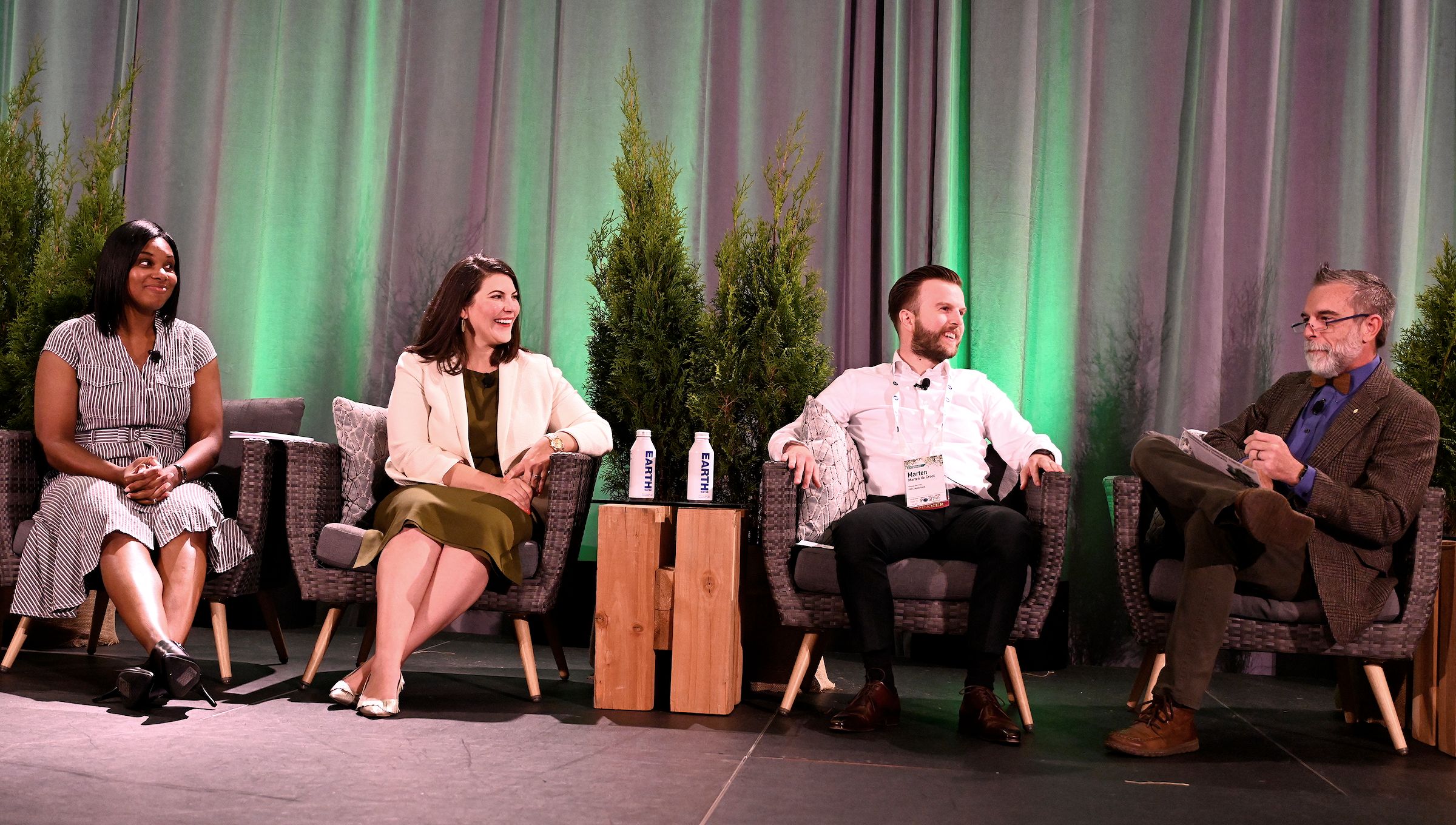 A panel discussion on urban forestry at the Sustainable Forestry Initiative’s annual conference in Vancouver, BC, in May 2023. Photo: SFI. Left to right: Sharon Jean-Philippe, professor of urban forestry, University of Tennessee; Caitlyn Pollihan, ISA CEO and Executive Director; Marten de Groot, National Secretary, PEFC Netherlands; and Paul Johnson, Senior Director, Urban and Community Forestry, the Sustainable Forestry Initiative.